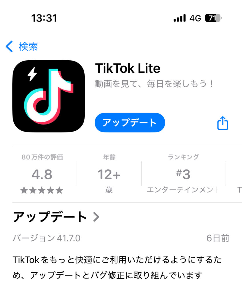 そんな噂のアプリが TikTok Lite(ティックトックライト) です。