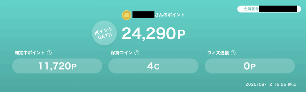 現在、約24,000円相当のポイントを保有しています。また、これまで約50,000ポイントをマイルや他ポイントに交換しておりますので、累計で75,000円相当のポイントを獲得しています。